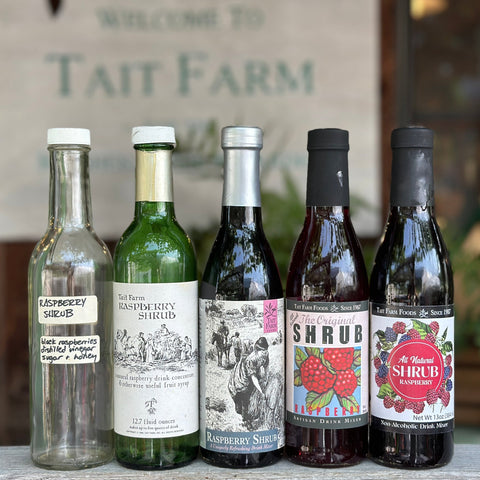 In the summer of 1986, a bumper crop of raspberries was hanging on the canes while it rained buckets for nearly two weeks. Rather than allow the fruit to spoil, it was picked and frozen for winter sales. After several unsuccessful attempts to sell the frozen raspberries, a family friend reminded David Tait of an old colonial beverage called Raspberry Shrub.